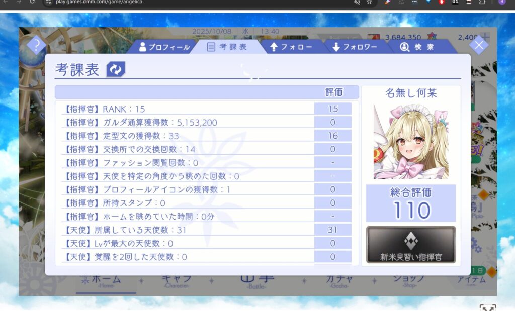 2024年12月中旬からログインしなくなってから、「10連ガチャチケ2枚」「★6確定チケ1枚」を含めて8個だけ。