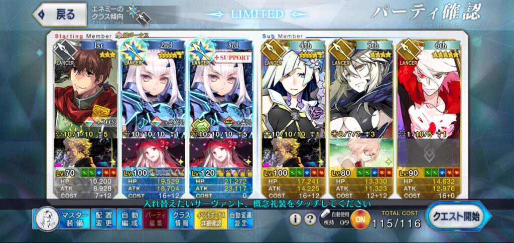 - マスター装備は、決戦用カルデア制服(全体攻撃力20%&宝具20%)