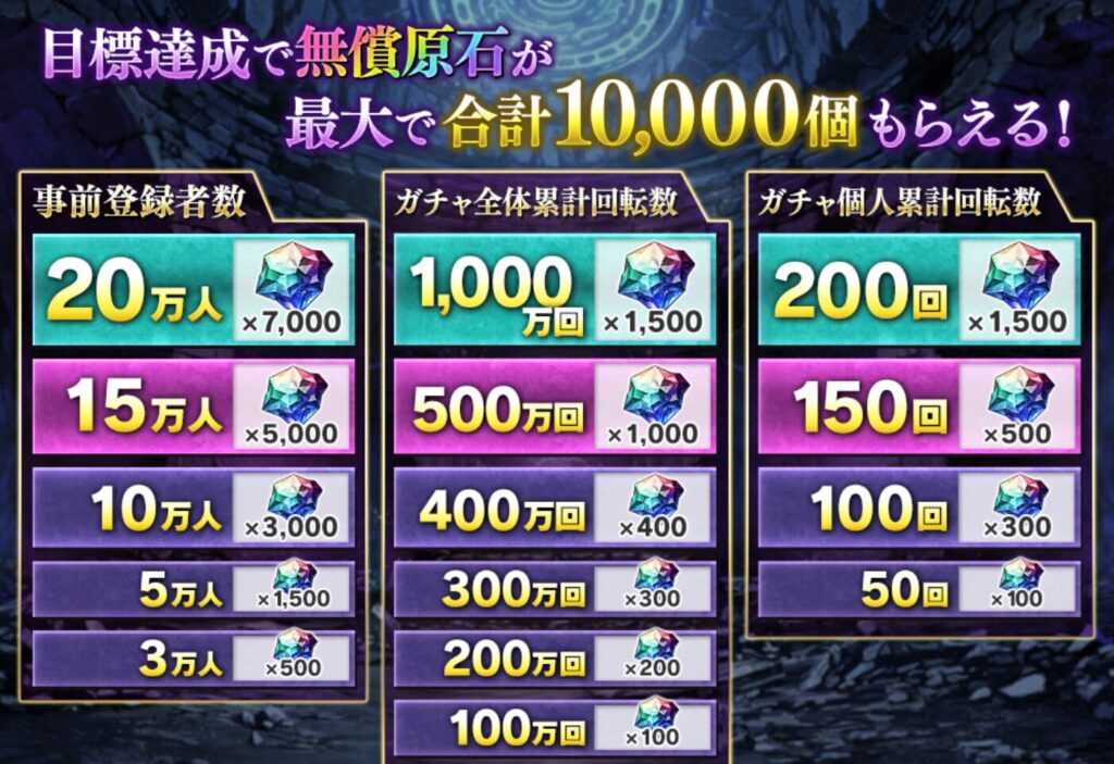 事前登録者数20万人で7000個。(2026年2月15日現在では、15万人達成)