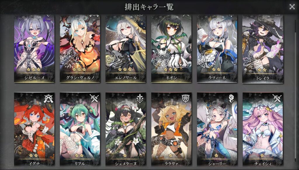 殆ど★1ばかりで、たまに★2、本当に稀に★3、という排出率。