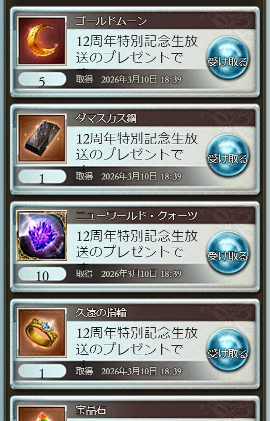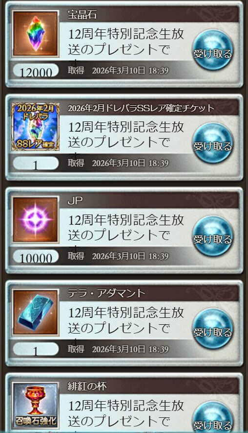 12周年特別記念生放送プレゼント