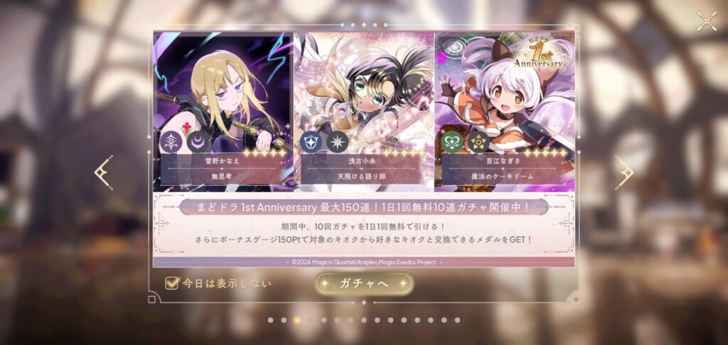 最大150連。1日1回。最終的に好きなキオクが貰える。