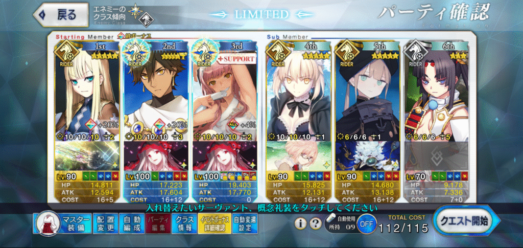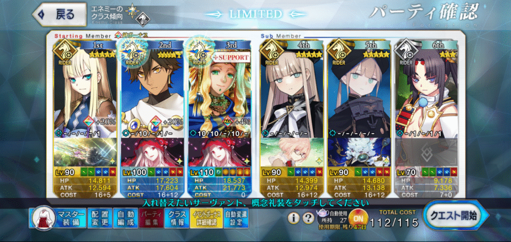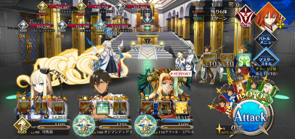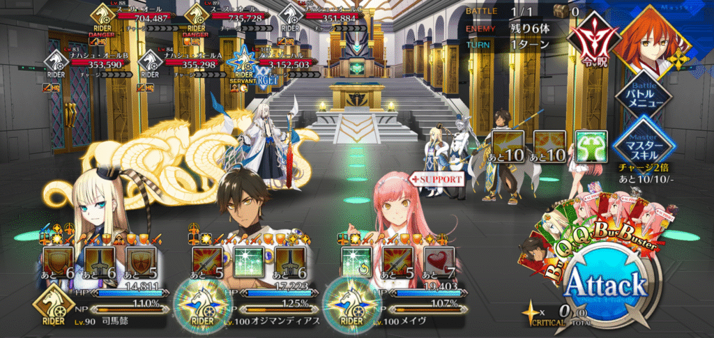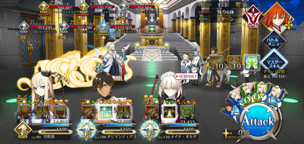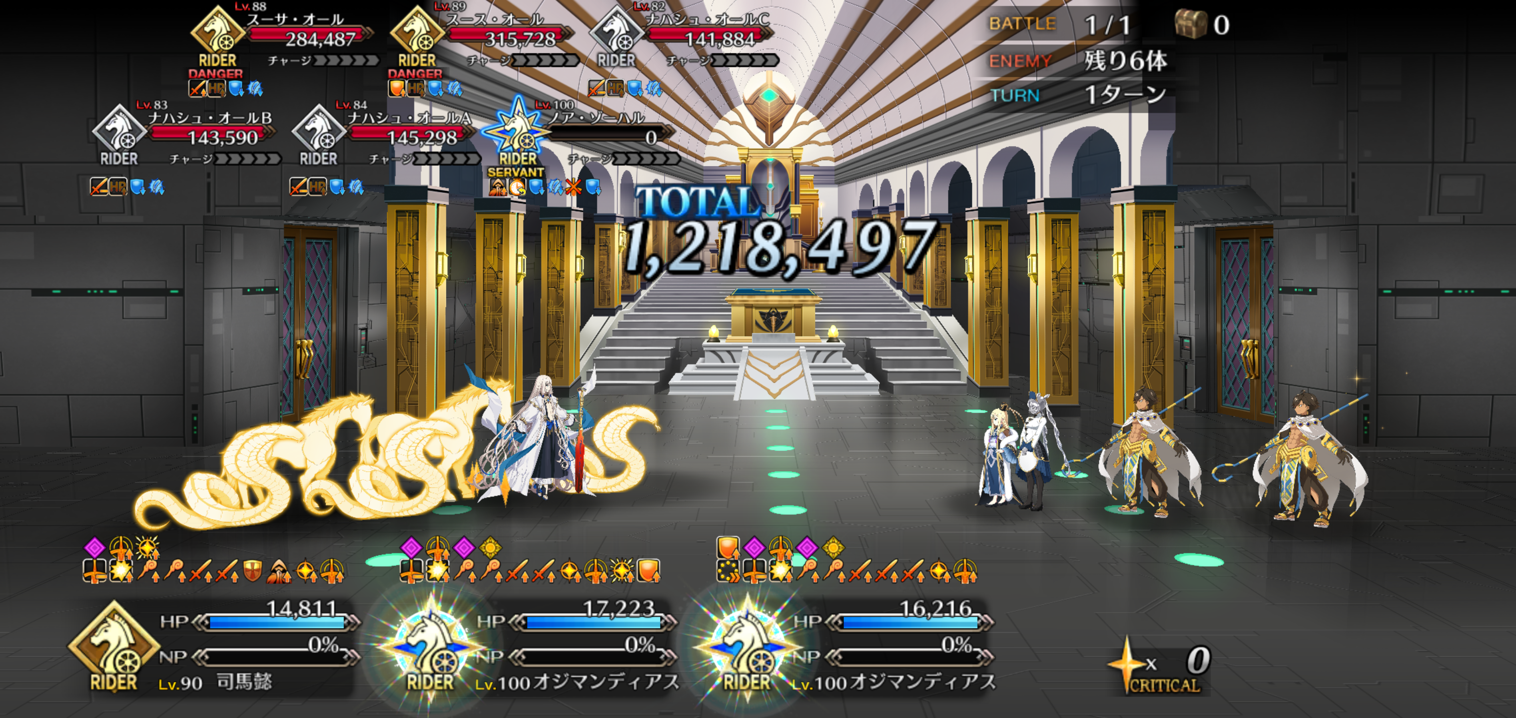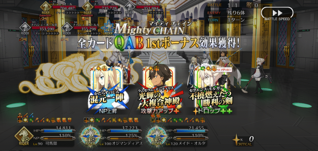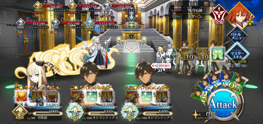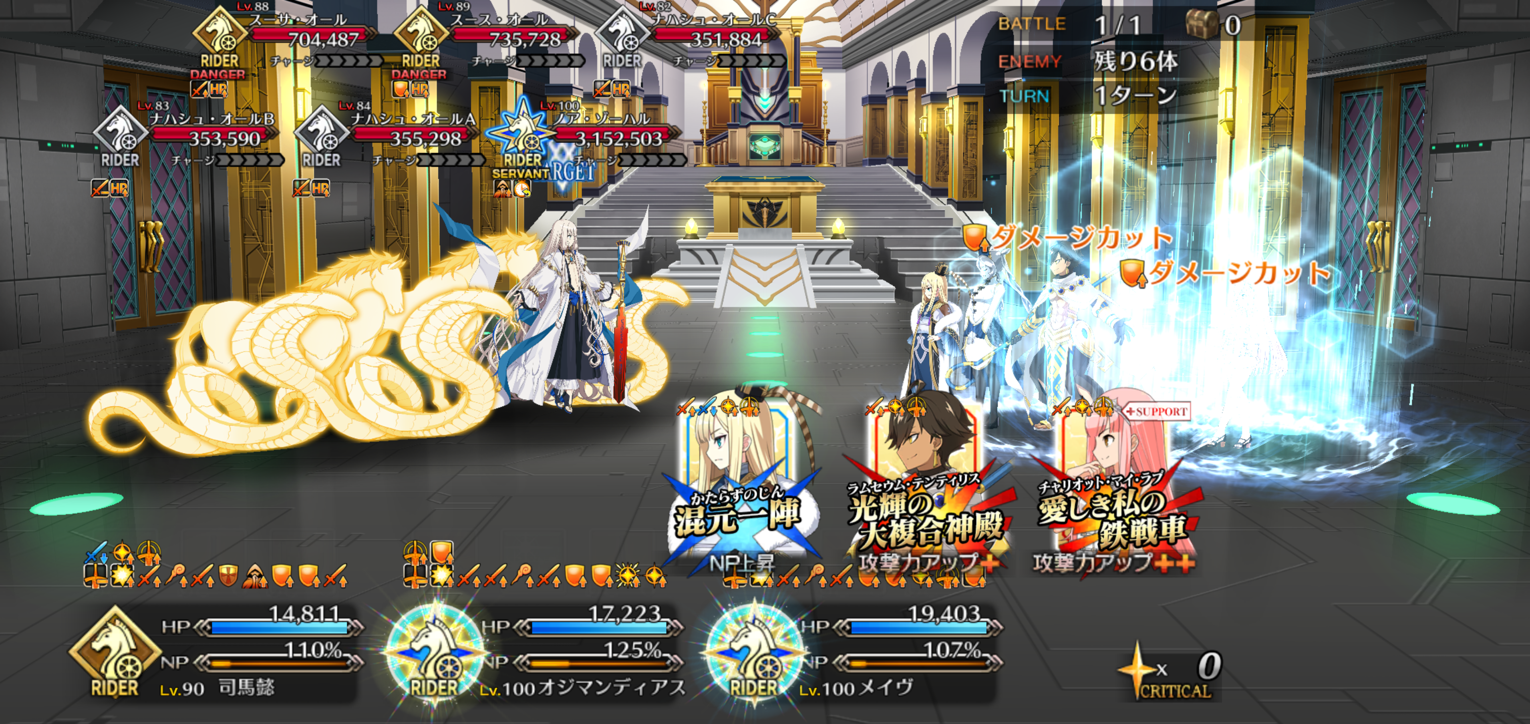 『冠位研鑽戦[ライダー]Ⅵ 推奨Lv.100★★』の1ターンクリア(フレンド未使用)と