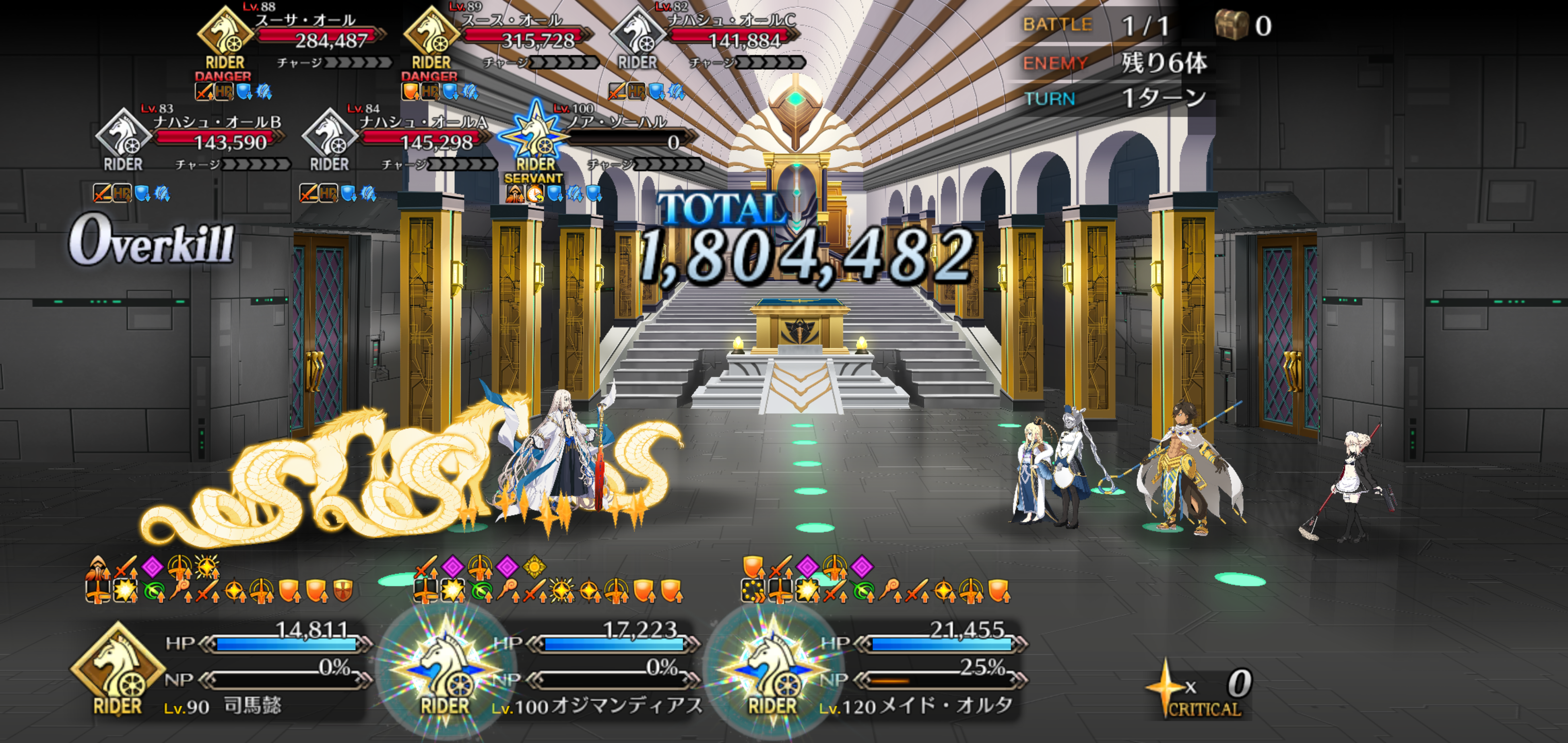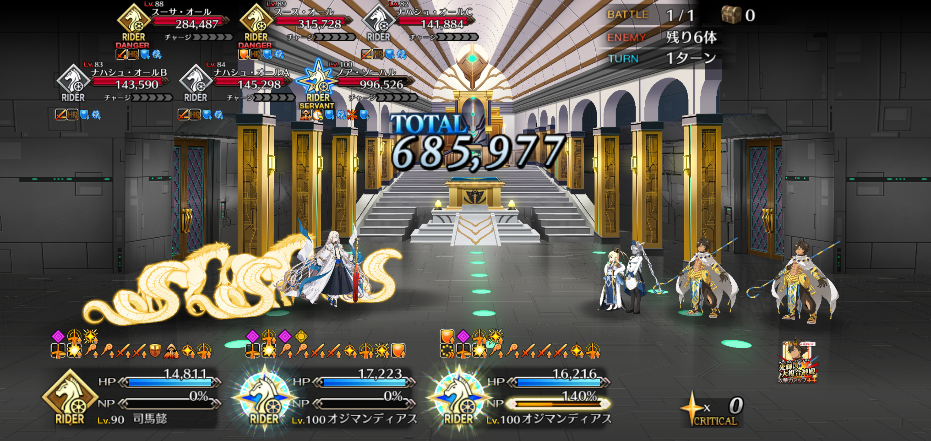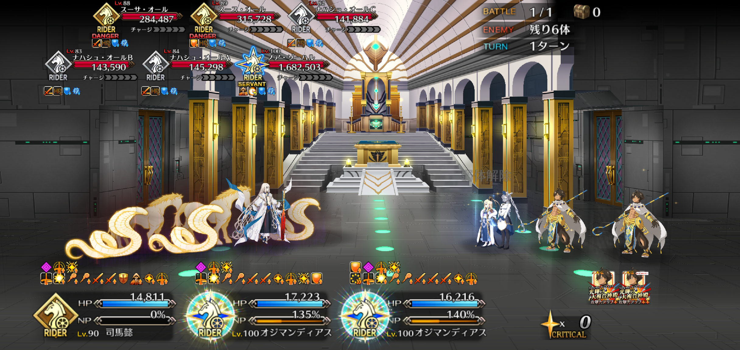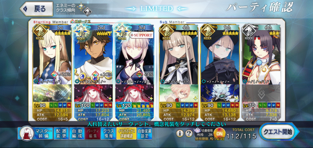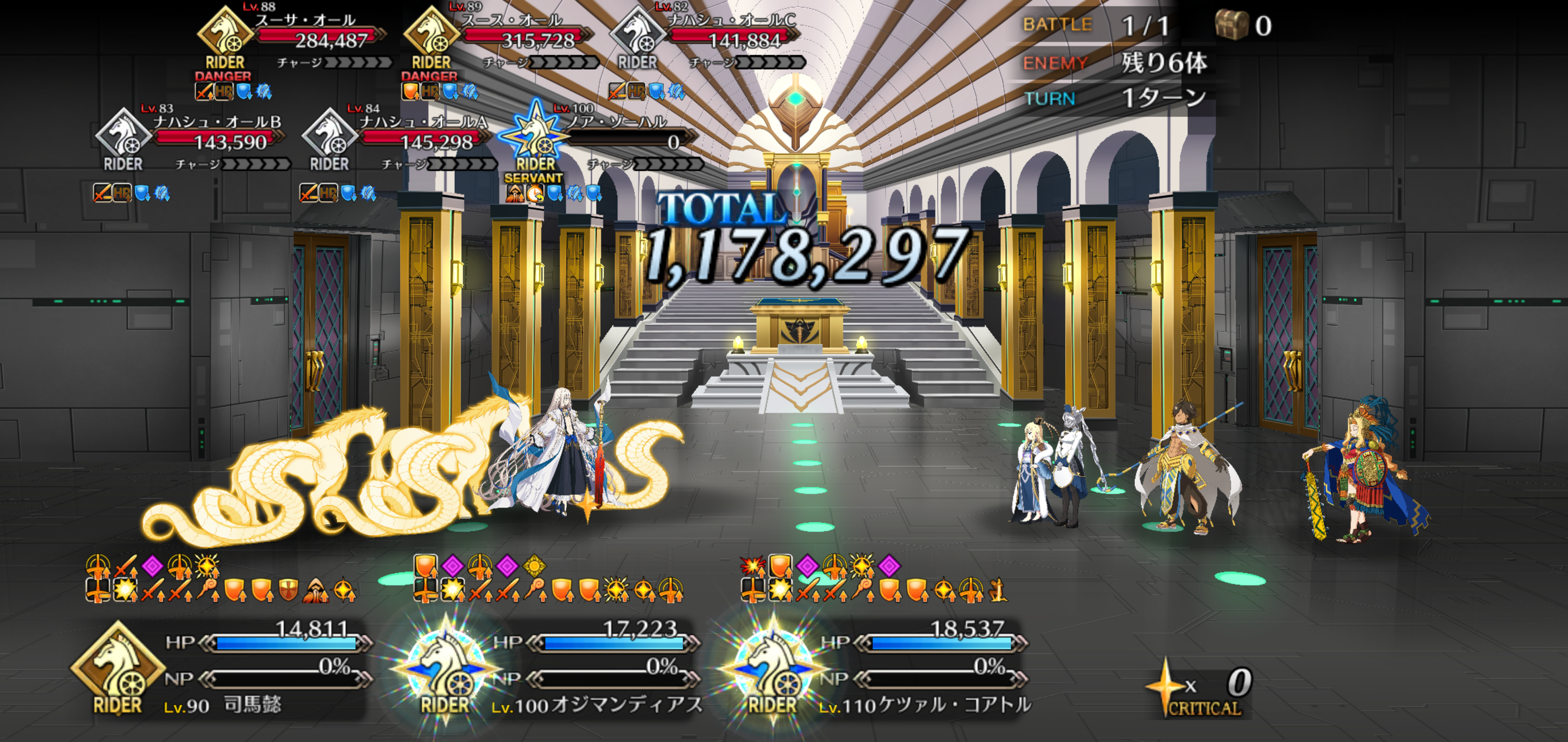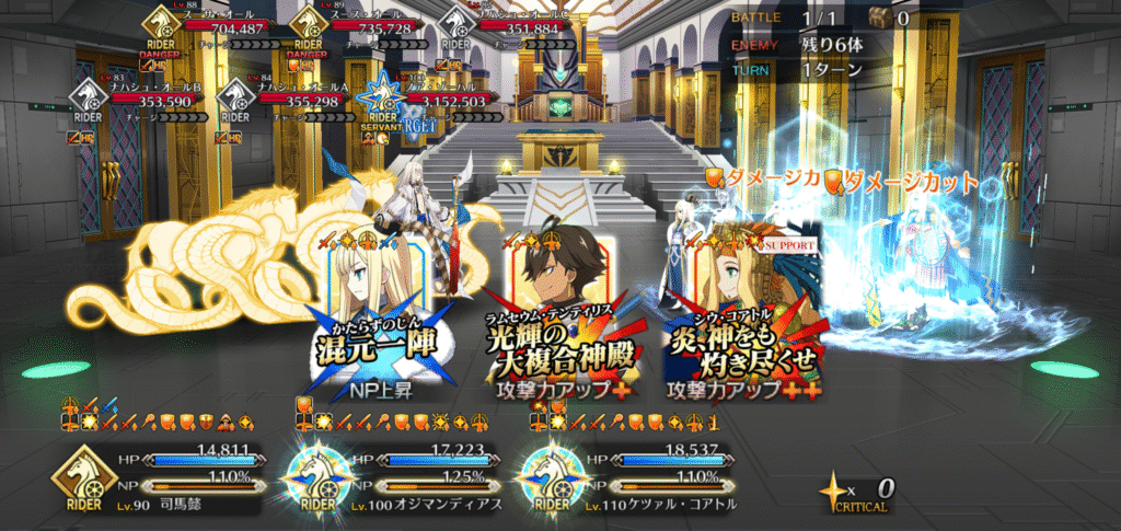 『冠位研鑽戦[ライダー]Ⅵ 推奨Lv.100★★』の1ターンクリア(フレンド未使用)と