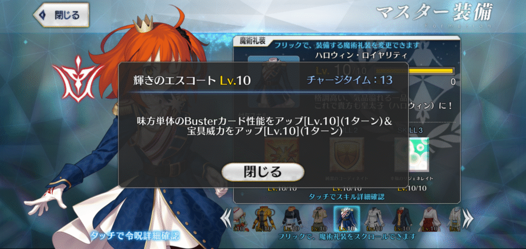 例えば、Wオジマンディアス編成ならバスターで、ハロウィン・ロイヤリティ。