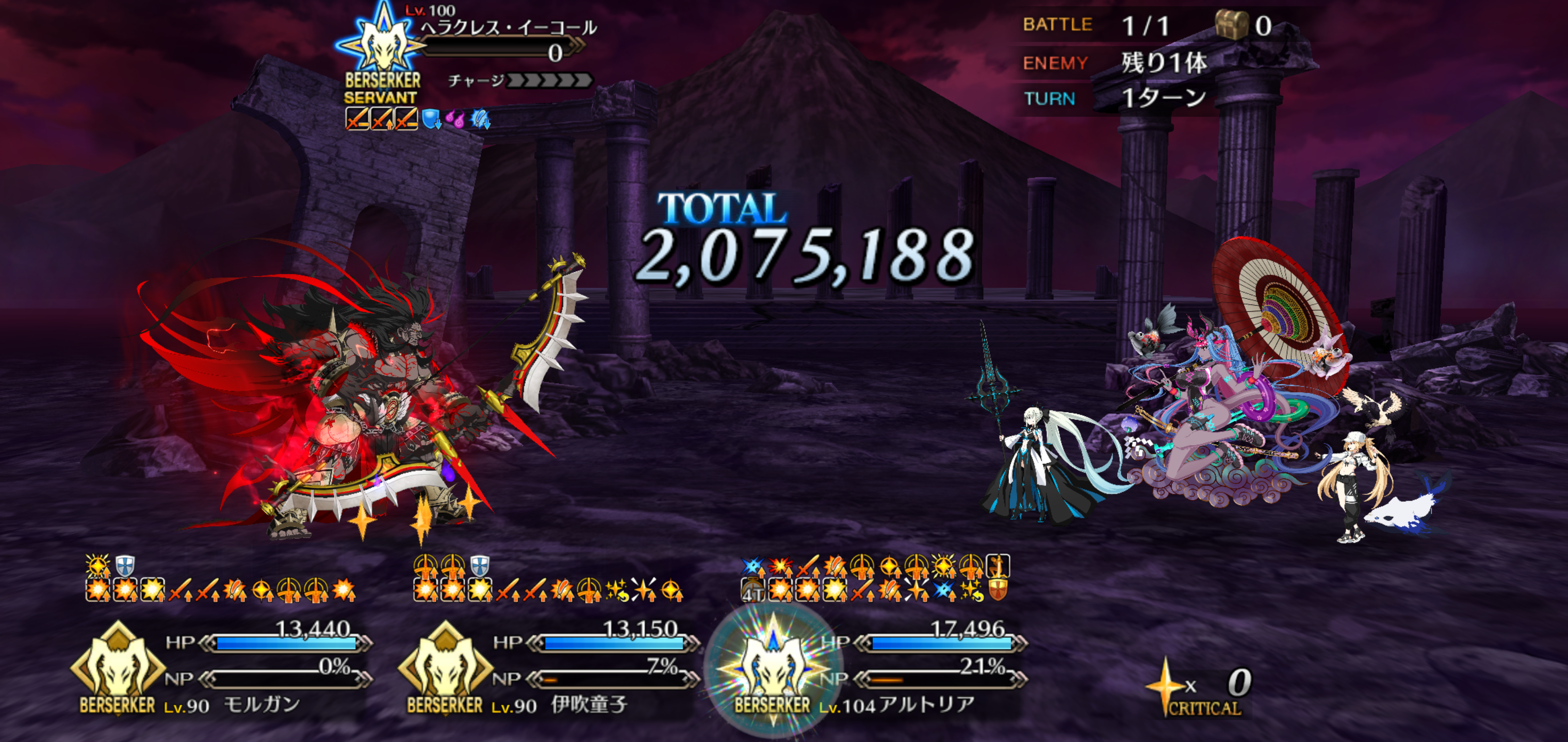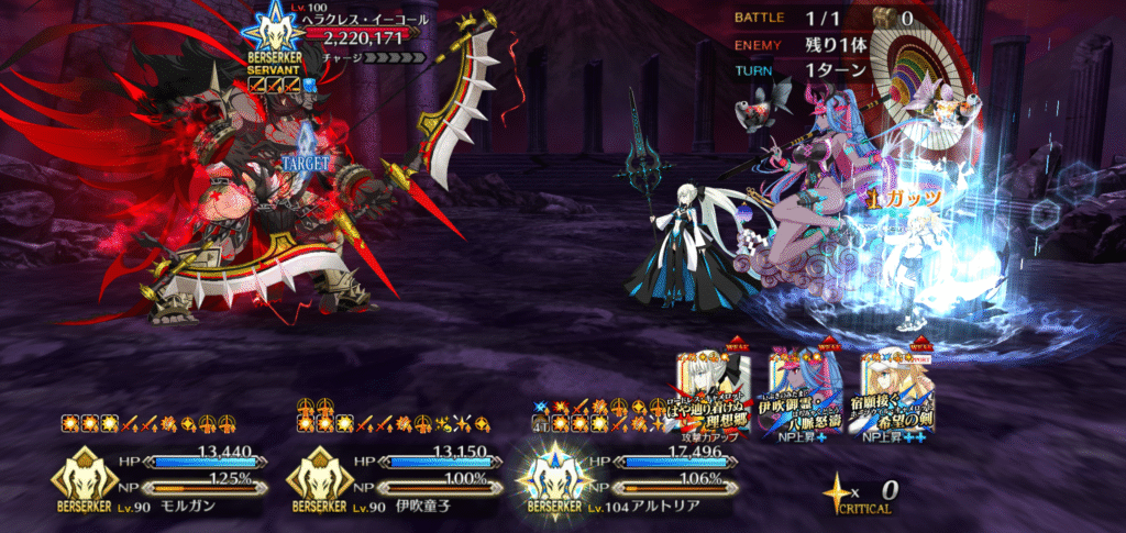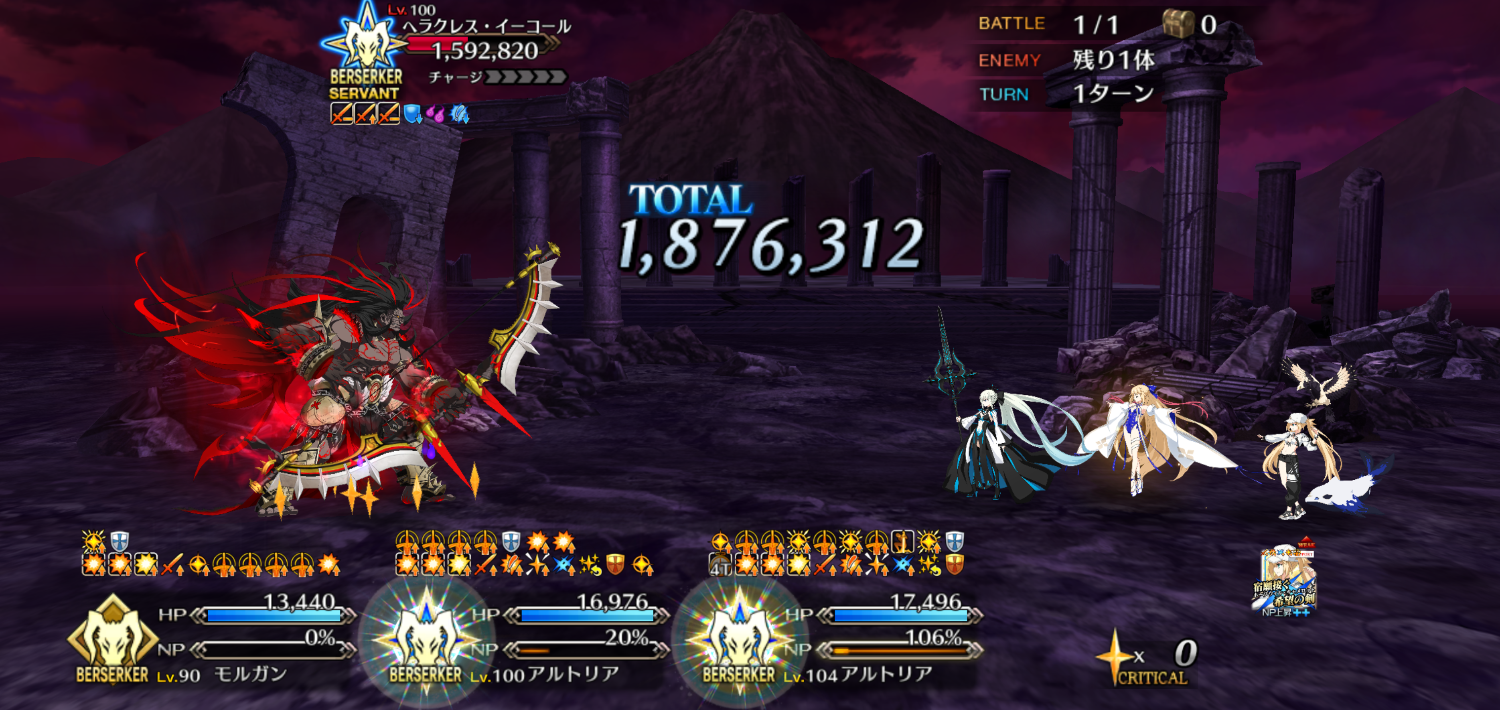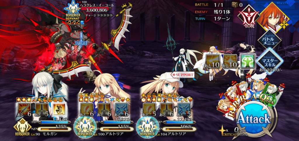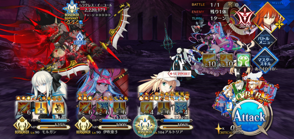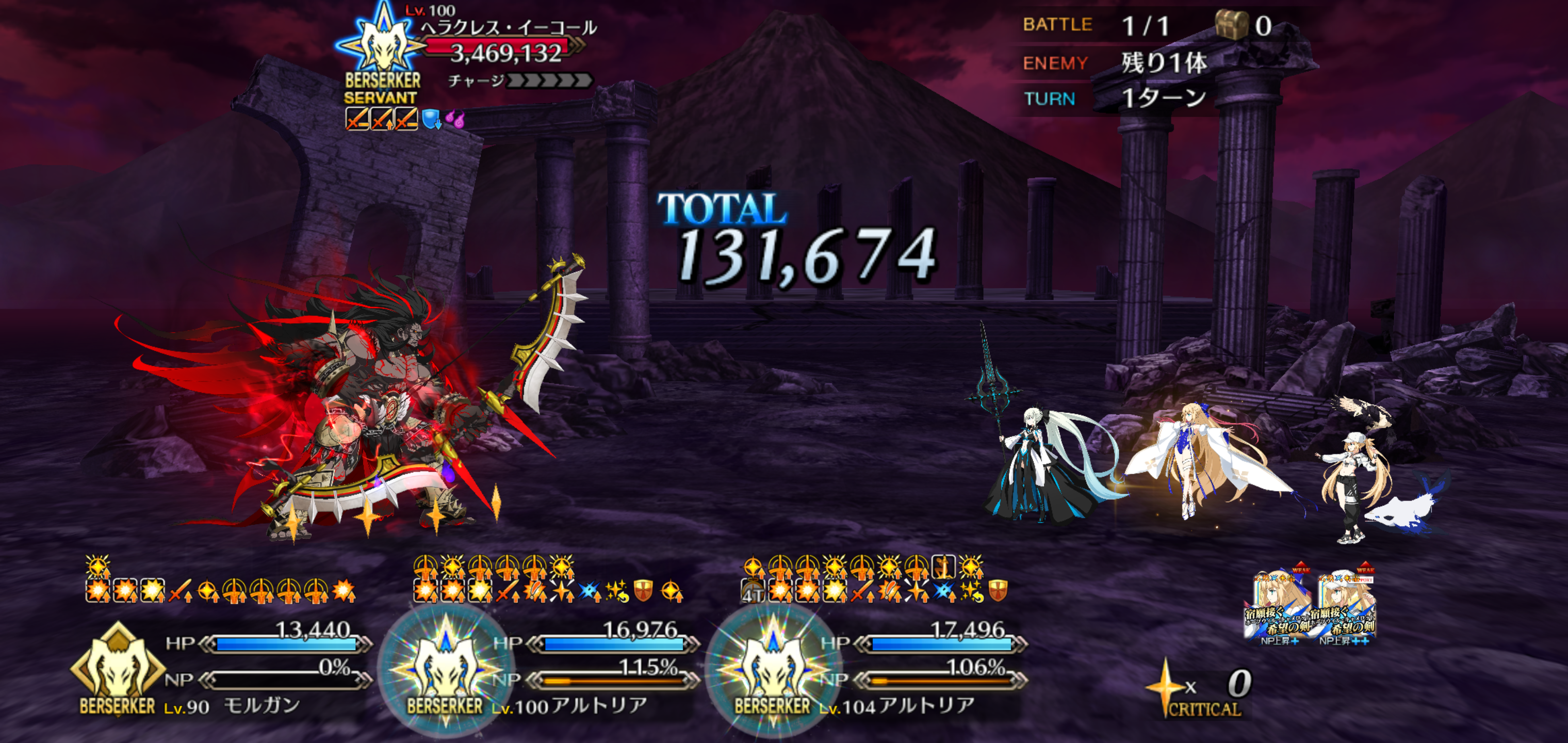 『冠位研鑽戦[バーサーカー]Ⅵ 推奨Lv.100★★』の1ターンクリア(フレンド使用)と