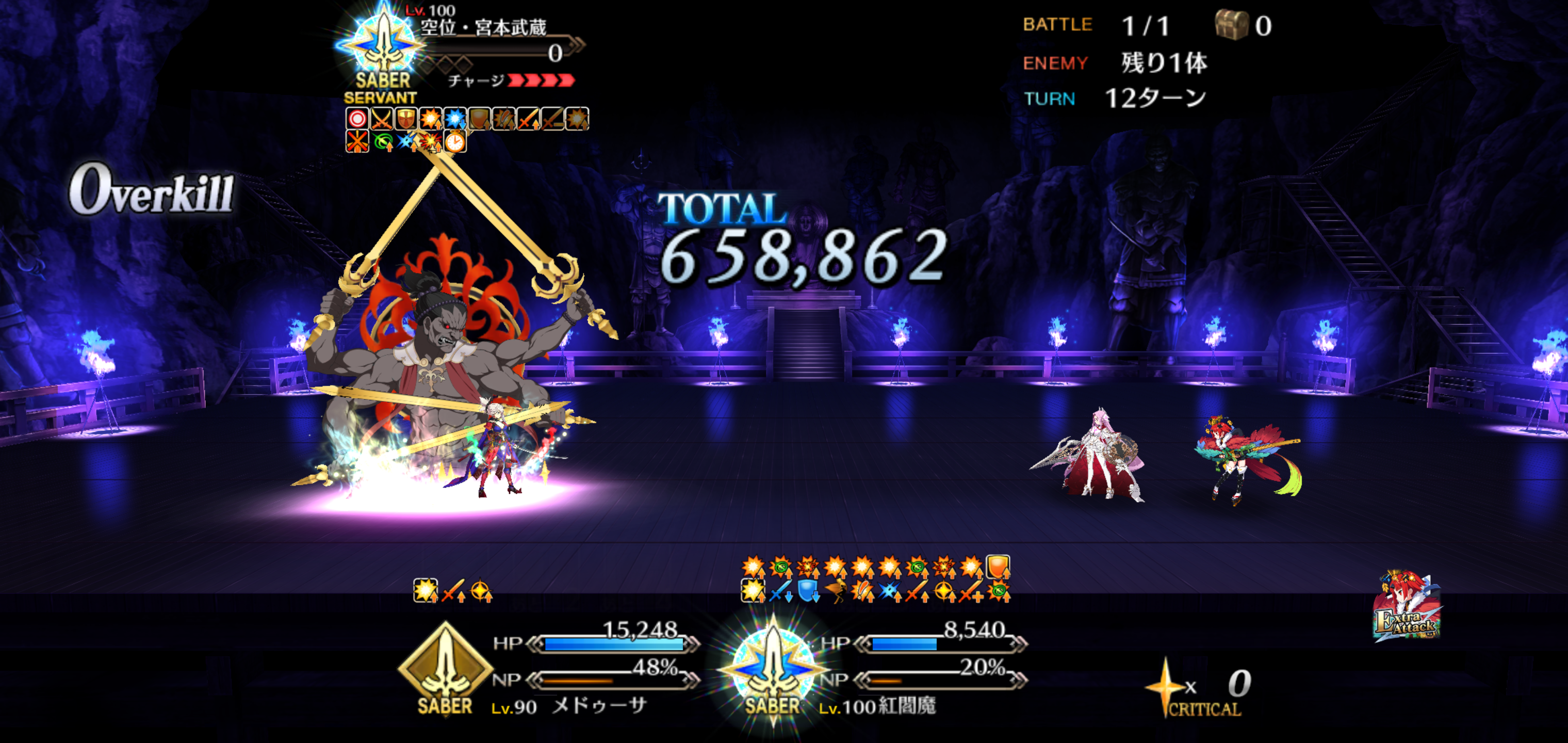 宝具を食らい、追い打ちの如く、敵にガッツ(無制限/5T)が発動。