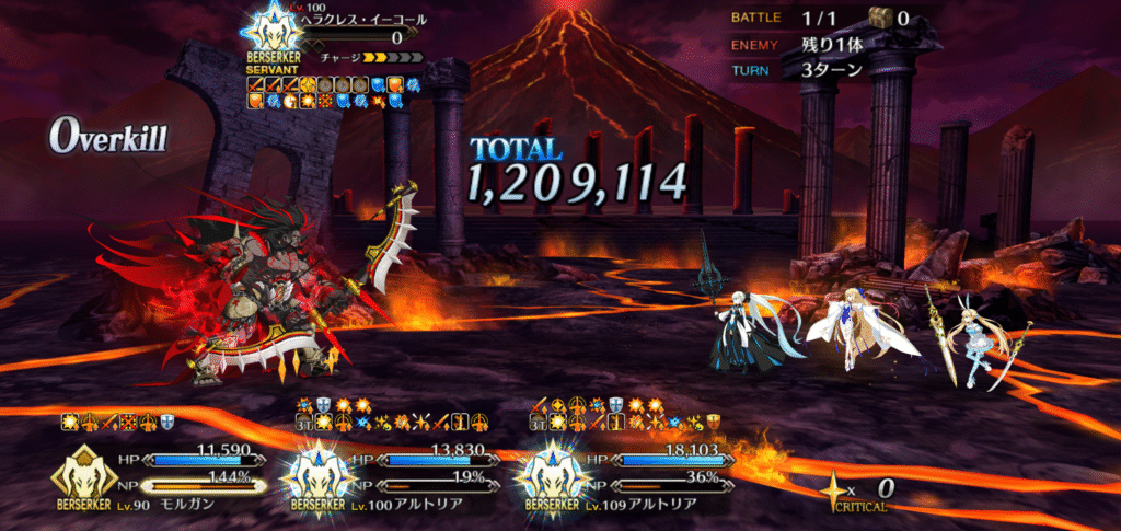 1発目の宝具で、ガッツ発動。ちょっとHPが復活するもガッツ消失。2発目の宝具で完全終了。