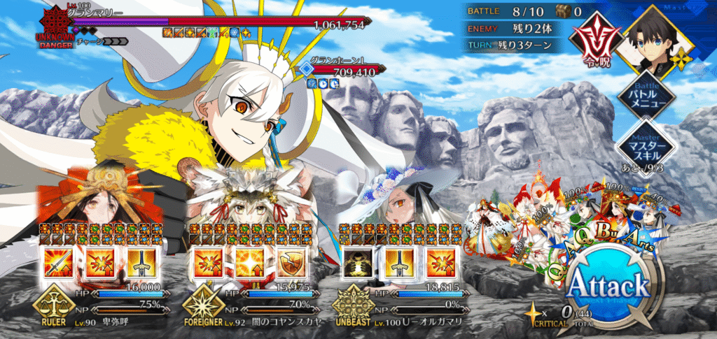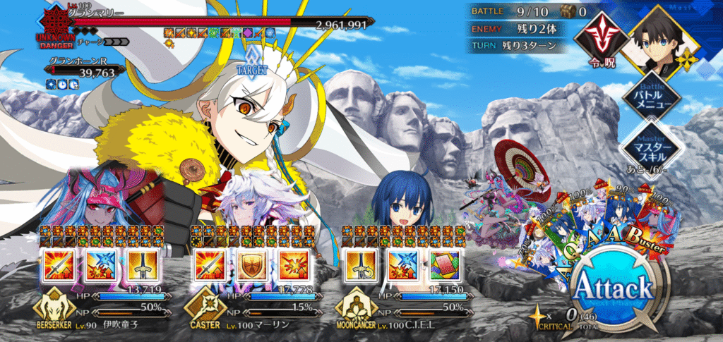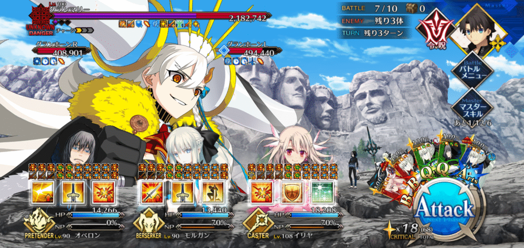 序盤は、ひたすらに全体宝具でグランホーンLを破壊し続けるという印象。