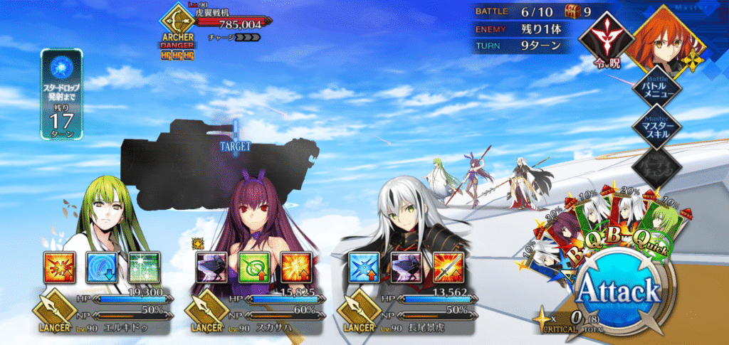 相手のQAB要求に応えつつ、通常攻撃や宝具でバッタバッタとやられていき、パーティ8にて決着。