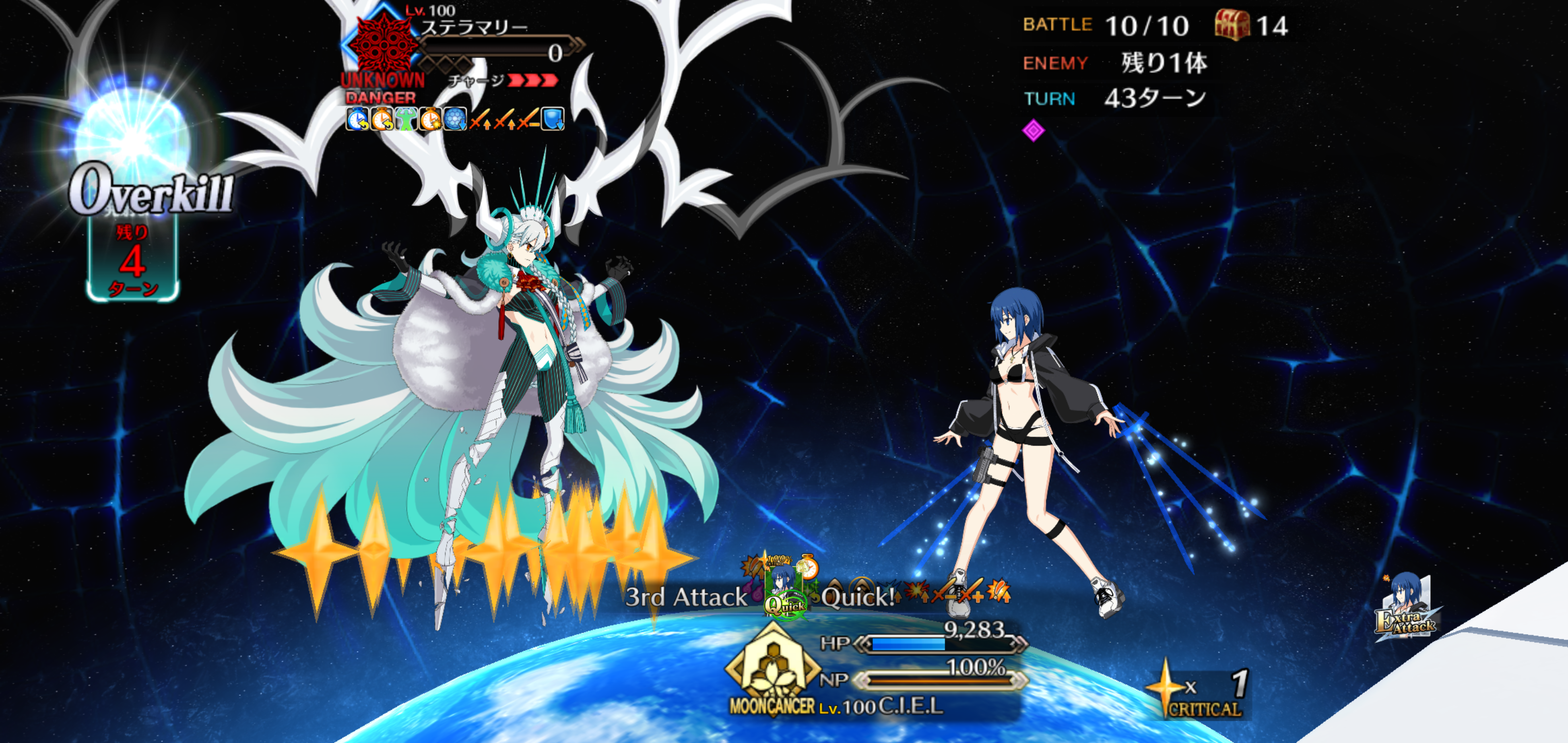 つい、BATTLE3のパーティのままでカーマ単体Q宝具とテュフォン全体B宝具。