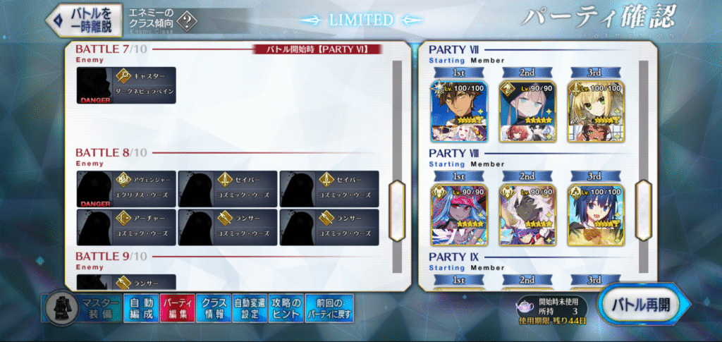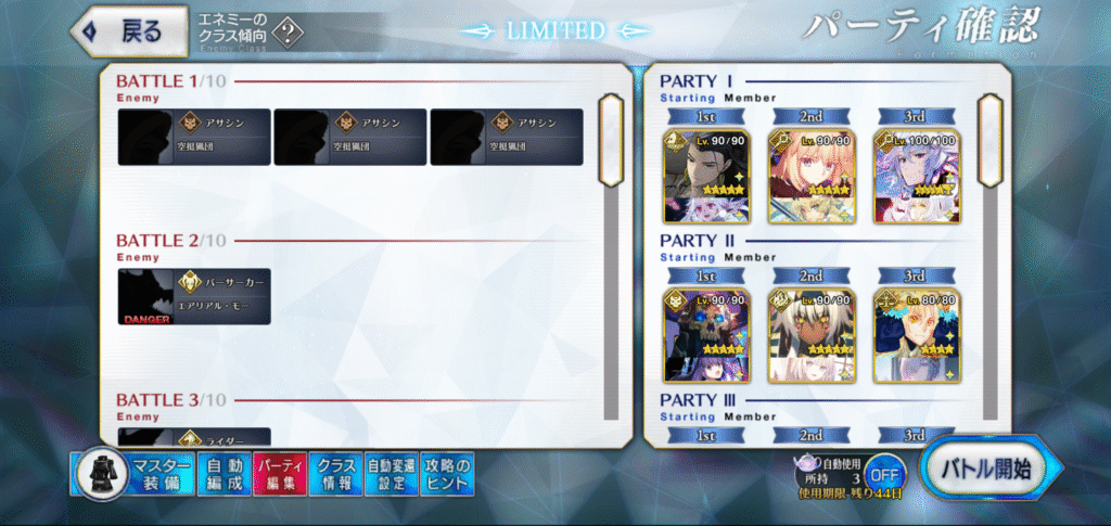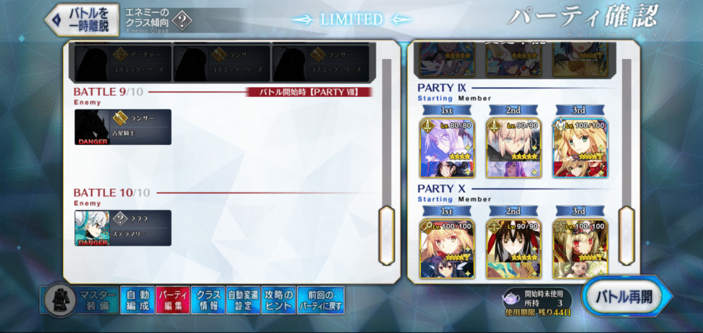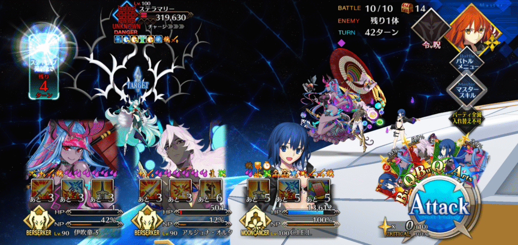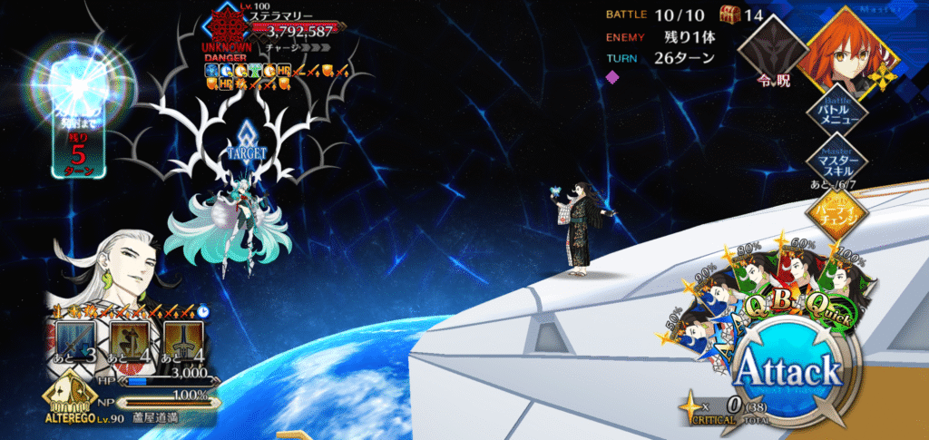 道満1体だけで十分。なので残り2体はBATTLE10のステラマリーに備えて、スター獲得か単体宝具持ちの鯖を置いとけば良かったと思いました。