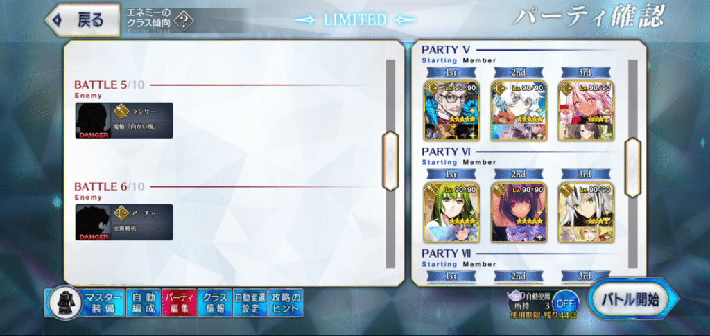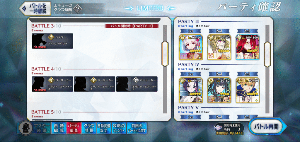 BATTLE4。Q耐性・クリ耐性・宝具耐性3人組。