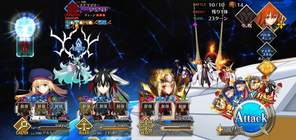 3ブレイク目で、再び最大HPバフやこちらに恐怖やら色々してたら、やっぱり敵の宝具でパーティ10の皆さん全滅。
